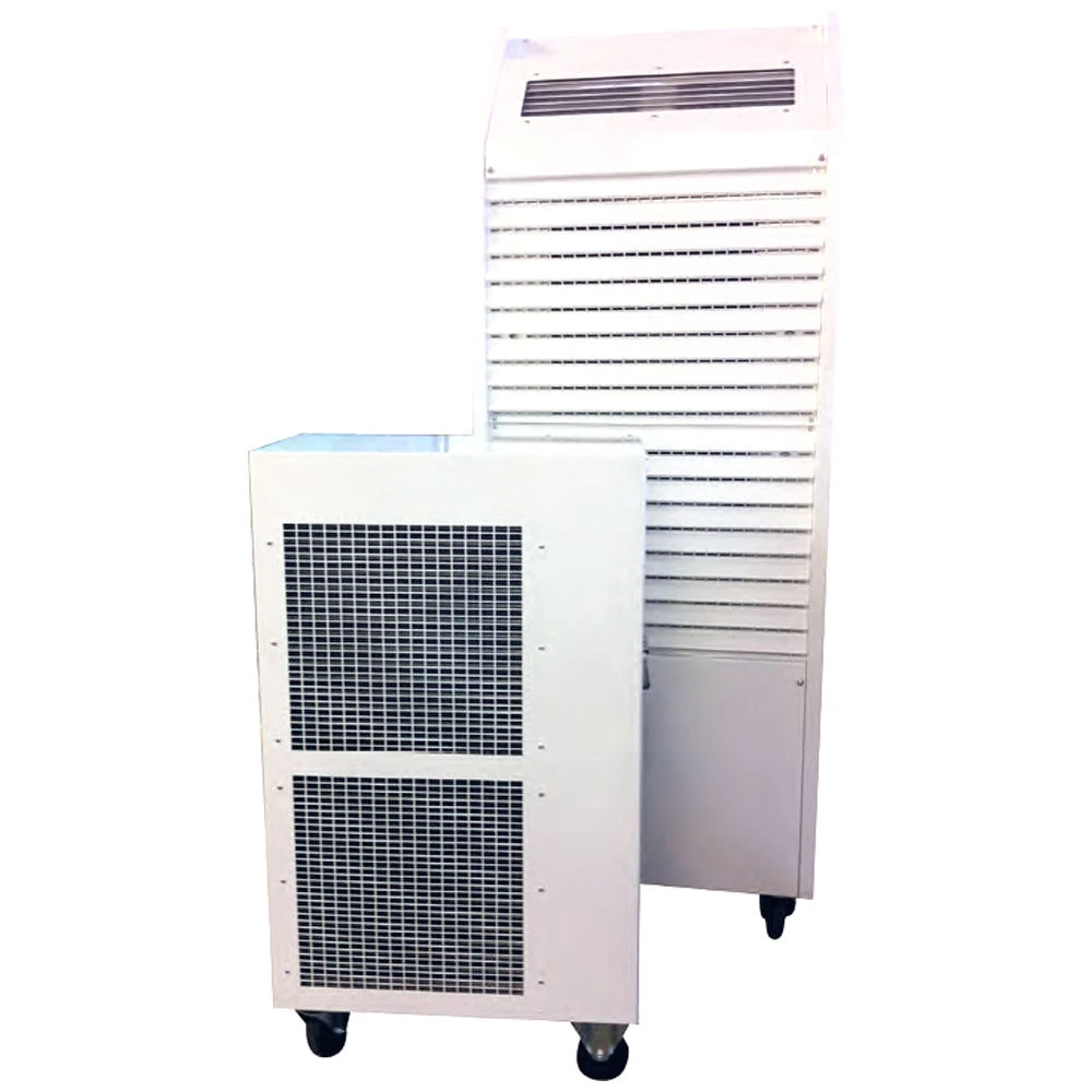 The most powerful water cooled split on the market, the MCSe14.6 takes everything the MCSe7.3 has to offer then doubles it. With a massive 14.6kW cooling duty, powerful EC fan technology and low GWP refrigerant combining to deliver cool air with maximum efficiency and minimum environmental impact. As with the MCSe7.3 the MCSe14.6 doesn’t require any ducting and the main unit can be sited up to 35M from the outdoor section allowing it to be sited deep within a building. Heavy duty lockable castors on both indoor and outdoor sections allow them to be easily moved into place while the strong steel case ensure it’s up to daily site use and perfect for hire fleets.