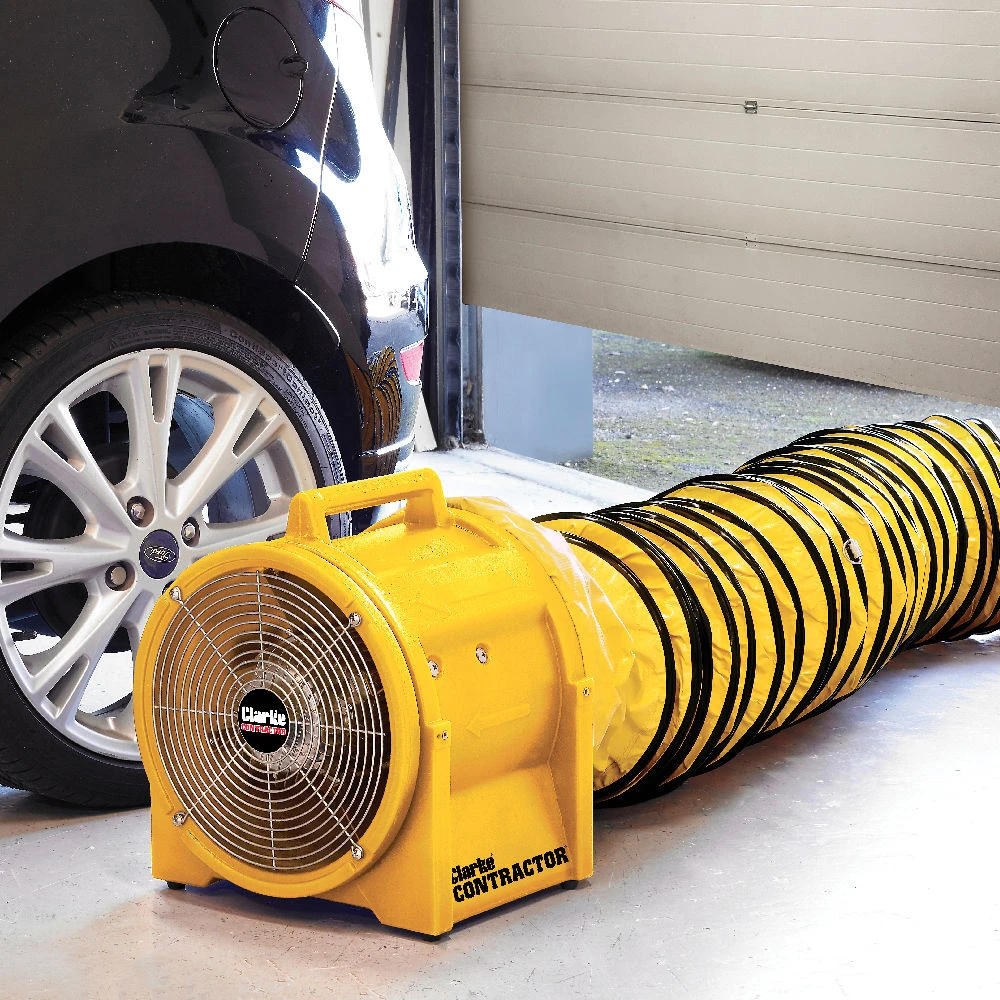 This high performance portable 110V ventilator fan with a durable plastic casing has been specifically designed for use in automotive, commercial, industrial and agricultural environments. Stale air is rapidly extracted to provide a cleaner, more pleasant working environment. Completing this ventilator is a sturdy build to ensure long term reliability. This product is compatible with the polymer duct container (part no: 3230485) and 12” x 5m Ducting Hose (part no: 3230481) – both sold seperately.