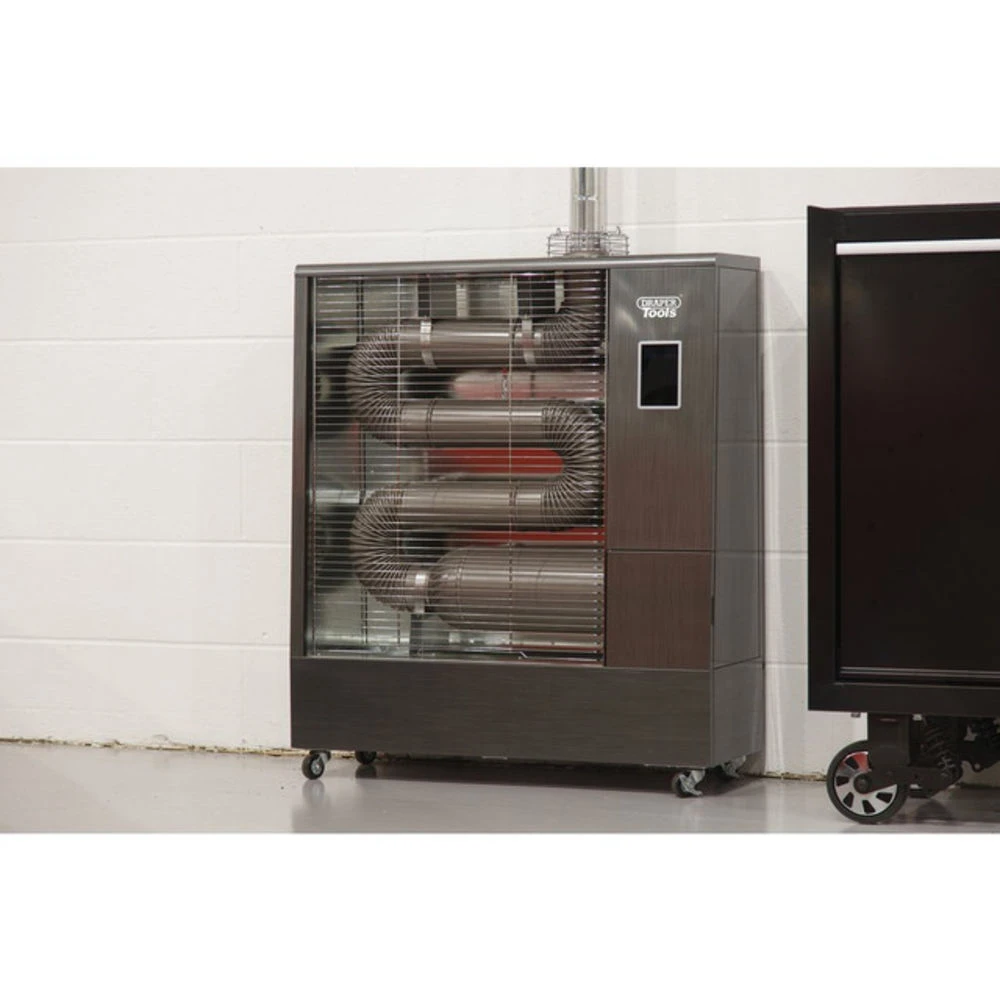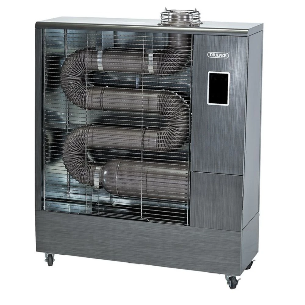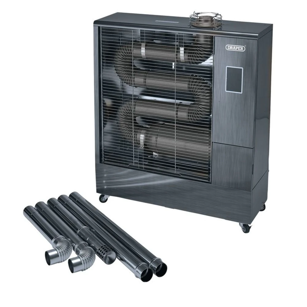 This indirect far infrared diesel heater with flue kit features a remote control and digital thermostat for easy heat control. It is economical, low noise, odourless and highly cost efficient to run. This heater consumes only 50W of electricity to keep the burner operating and it consumes as little as 1.2 litres of diesel fuel per hour. Unlike traditional fan heaters, infrared heat spreads evenly in all directions.