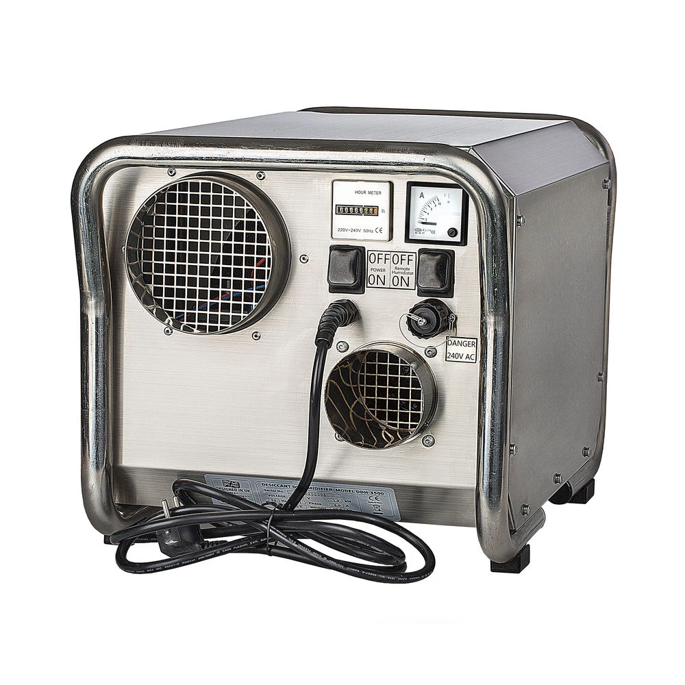 The Ecor Pro DH2500 INOX is a industrial dehumidifier ideal for use in both indoor and outdoor areas in crawl spaces, lofts, garages and warehouses. Featuring a compact stainless steel design this unit runs quiet and can be used continuously up to temperatures of -20°C and being compact, the DH2500 desiccant dehumidifier can easily be carried by one person.