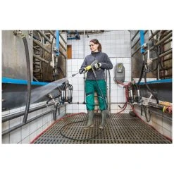 Powerful, versatile and robust machines, ideal for tough cleaning jobs in agriculture, construction and automotive sectors, where high water flow is needed to shift dirt and detergent quickly. The upright design makes them highly manoeuvrable and easy to transport. Equipped with quality features such as an automatic pressure relief system and and built with efficient pump technology the machine can withstand harsh industrial environments. The dirtblaster nozzle provides even greater cleaning performance for the most difficult cleaning tasks and the sophistcated on board storage allows for secure and tidy storing. 110v power supply, provides the ideal solution for cleaning tasks on construction sites.