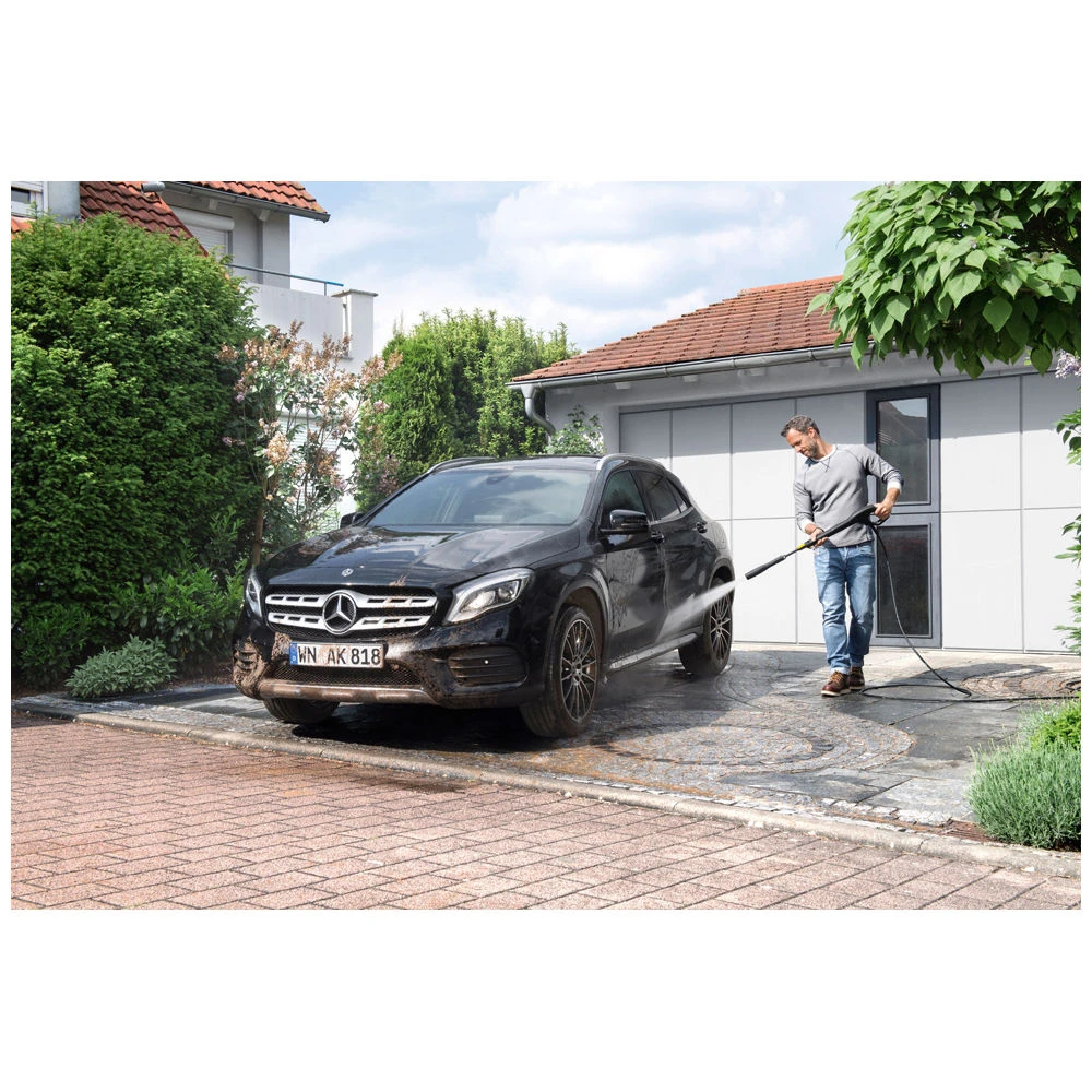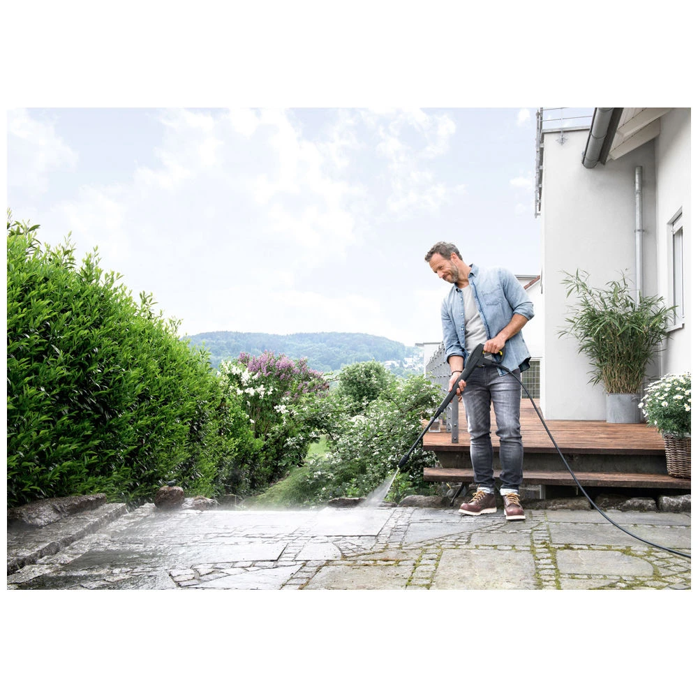 The Kärcher K 2 Compact pressure washer is lightweight and can tackle any outdoor cleaning task. Whether you’re looking to gently clean delicate paintwork on your car, or need to remove stubborn dirt from a hard surface, the K 2 Compact is up to the task. The unit is compact enough to be stored in a shed or transported in the boot of the car.