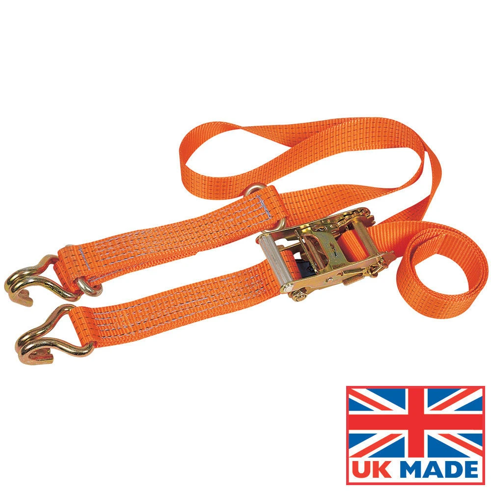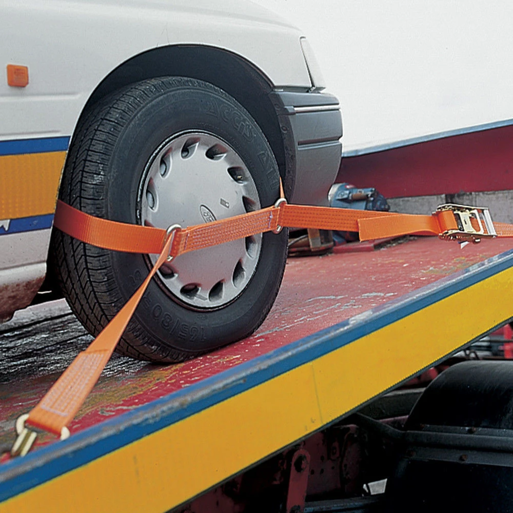 Manufactured from the finest quality, high tenacity polyester webbing and able to sustain a force of up to 5000kg, this 50mm lashing is specifically designed to secure most vehicles to trailers and car transporters. Lightweight and flexible, this system is efficiently tensioned by a compact ratchet tensioner that can be easily operated by one person.