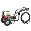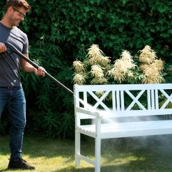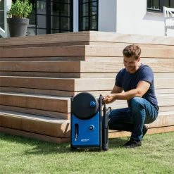 The pressure washer also includes a wheeled trolly that is well-balanced, with a foldable handle for easy storage.