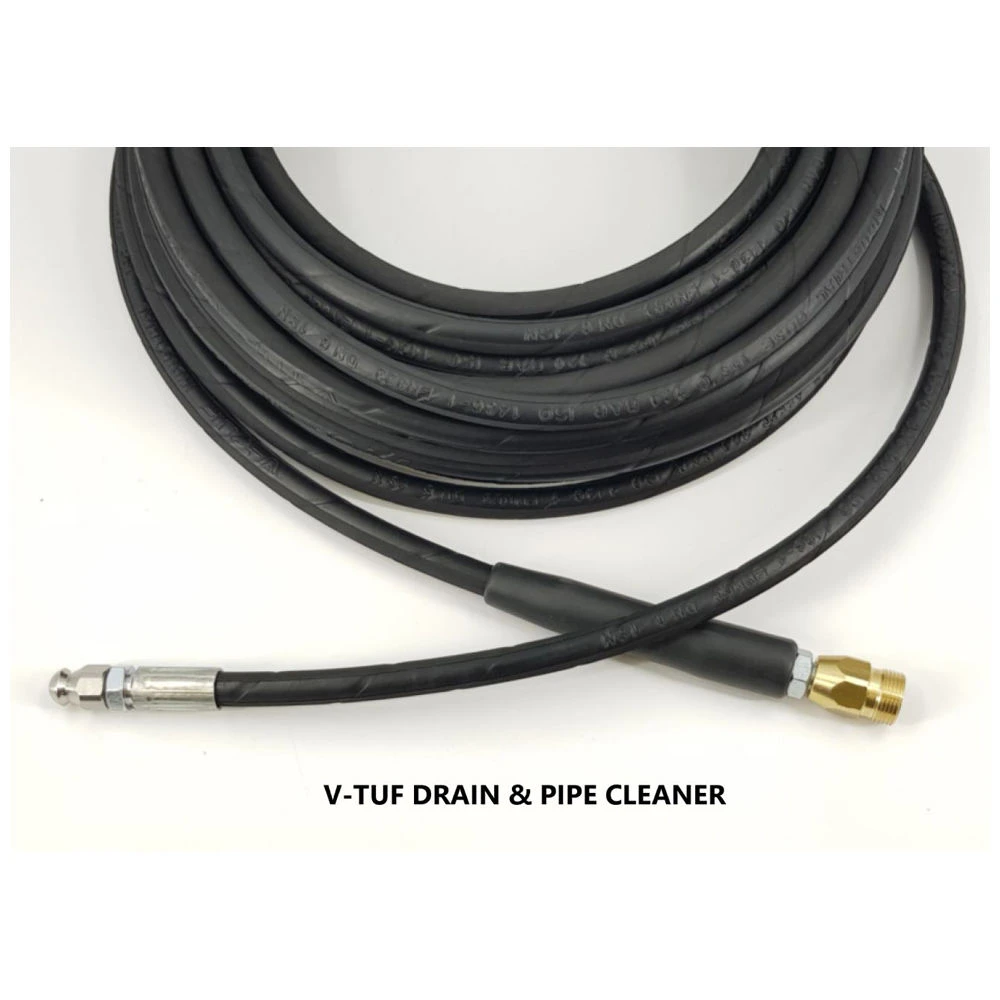 V-TUF VTK11420KM3B1F 20 meter drain and pipe cleaning hose fits any pressure washer gun with the M22F type coupling.
