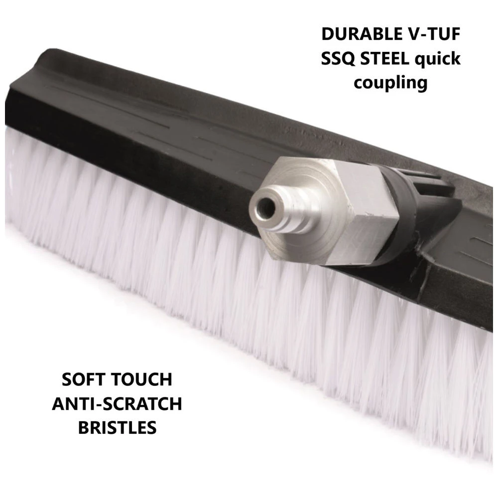 V-TUF VCB WASH BRUSH (350mm cleaning width) with SOFT TOUCH anti-scratch bristles and steel SSQ MALE durable quick release coupling. Suitable for V-TUF V5 pressure washers and any pressure washer with SSQ Female ended lances.