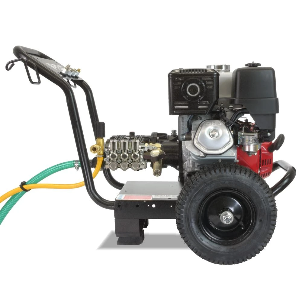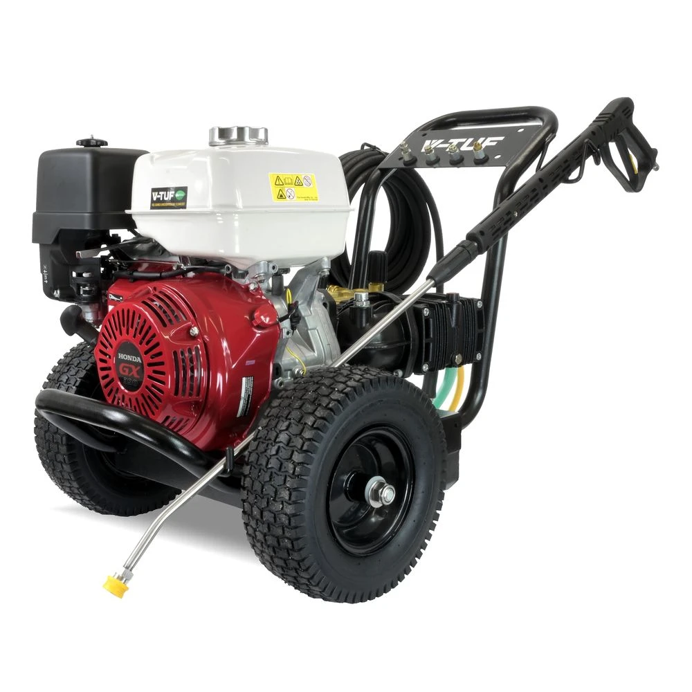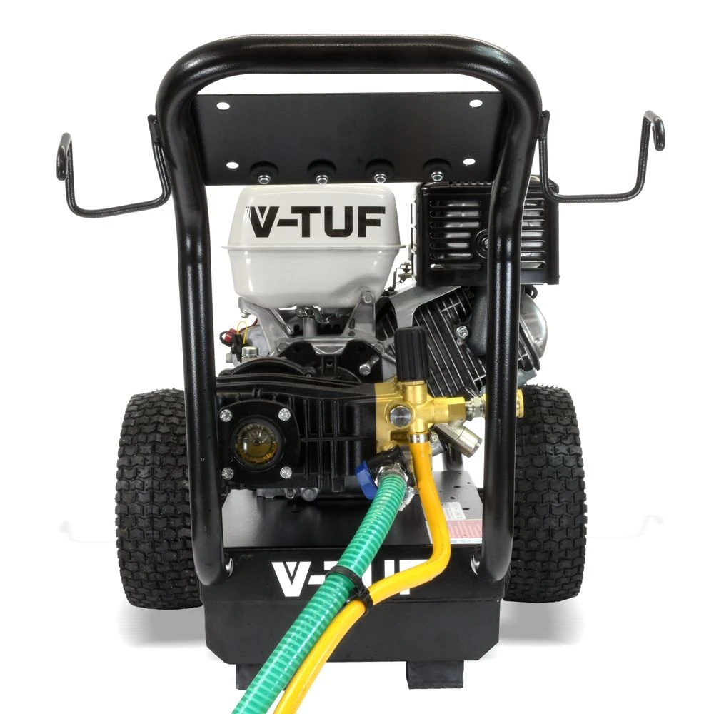 The V-TUF GB110 is a reliable and very powerful cold water pressure washer ideal for a wide range of industrial cleaning applications. Powered by an 13HP Honda petrol engine mounted to rugged, hard working gearbox driven V-TUF Super Series pump, the GB110 is a washer you know you can rely on to produce excellent results time after time. Designed simply to be easy to use, rugged and easy to maintain, the GB110 features large 13″ Pneumatic wheels for great portability, a robust tubular frame and durable ceramic pistons.