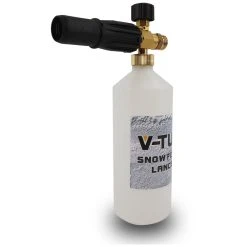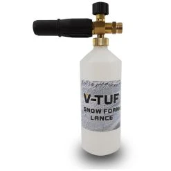 V-TUF Foam Cannon that quickly couples to the end of your Trigger/lance, giving you instant foam because it doesn’t have to travel down the hose. Snow foam gives the detergent an even spread and a longer curing time. Meaning the detergent has more time to do the work. It is also easier to see the areas you might have missed.