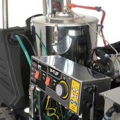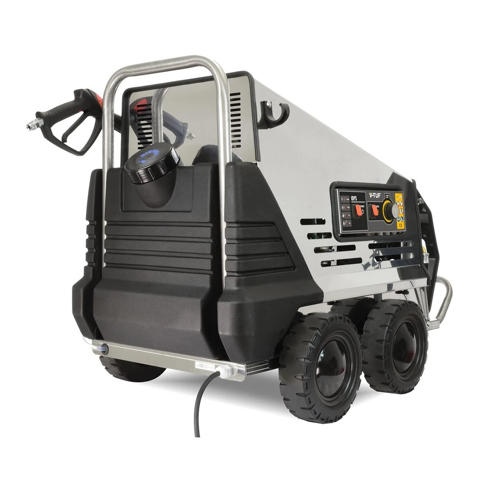 The VTUF The RAPIDVTS1520HPC stainless steel built pressure washer has been developed by the user to satisfy the requirements for the ideal hot pressure washer for high performance efficient cleaning on 415 volt electric supply. Performance: High flow 15 litres per minute; 3000PSI (200BAR) on 400 Volt electric supply. The RAPID VTS 15200HPC’s 100% 304 STAINLESS STEEL CONSTRUCTION (chassis, cover, water tank and boiler housing) makes it one of the toughest and corrosive resistant machines. The VTUF RAPID VTS 15200HPC has a high pressure chemical feature to give the detergent deep penetration in to dirt and grease. Hot water cleaning combined with high water flow makes tough cleaning tasks light work!