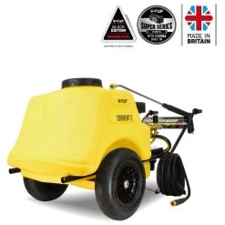 With a large 150L water tank, which is easy to fill, and sits neatly on a supported frame, so it can be easily transported across all types of rough terrain, transporting the TORRENT 2H jet wash bowser is effortless. With a powerful 5.5HP engine, providing a high-pressure water supply of 150Bar, the performance of this V-TUF pressure washer always delivers effective cleaning results, wherever required! The V-TUF TORRENT 2H delivers high amounts of cleaning power, along with superb performance, has proven reliability, a tough build, large 16″ wheels, as well as leading the pack with reduced emissions.