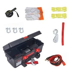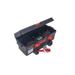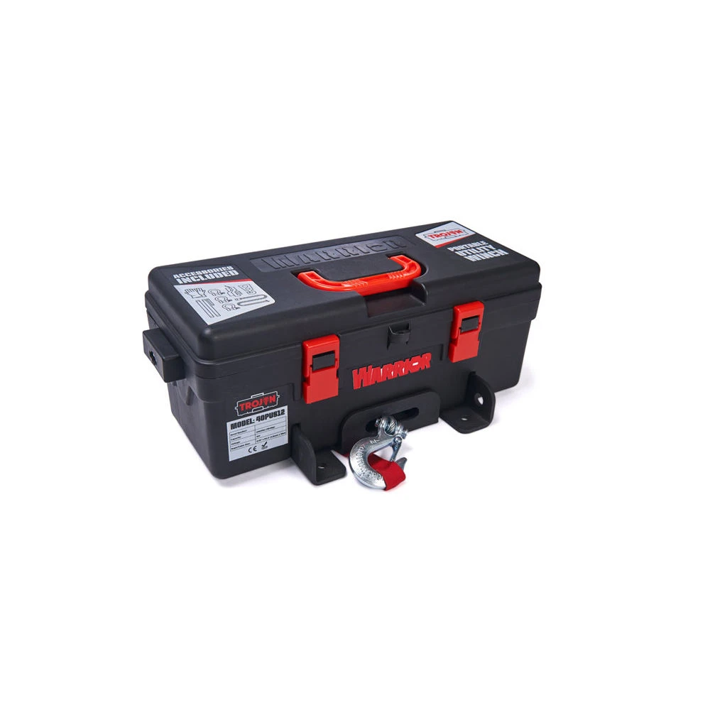 The Trojan Portable Utility Winch is an excellent solution to your portable winching needs, requiring 12V and a maximum draw of 190A at full capacity. It also comes in a convenient kit which features a 4,000lbs (1800kg) rated line pull winch on a unique, powder-coated winch platform, all in a compact, easy to carry composite tool box. The kit is designed to be easy to store, use, and repack.