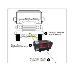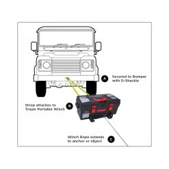 Completely portable, the Trojan requires no installation and does not require a winch mount; however, it can be permanently mounted on a trailer and be used as a utility winch if desired.
